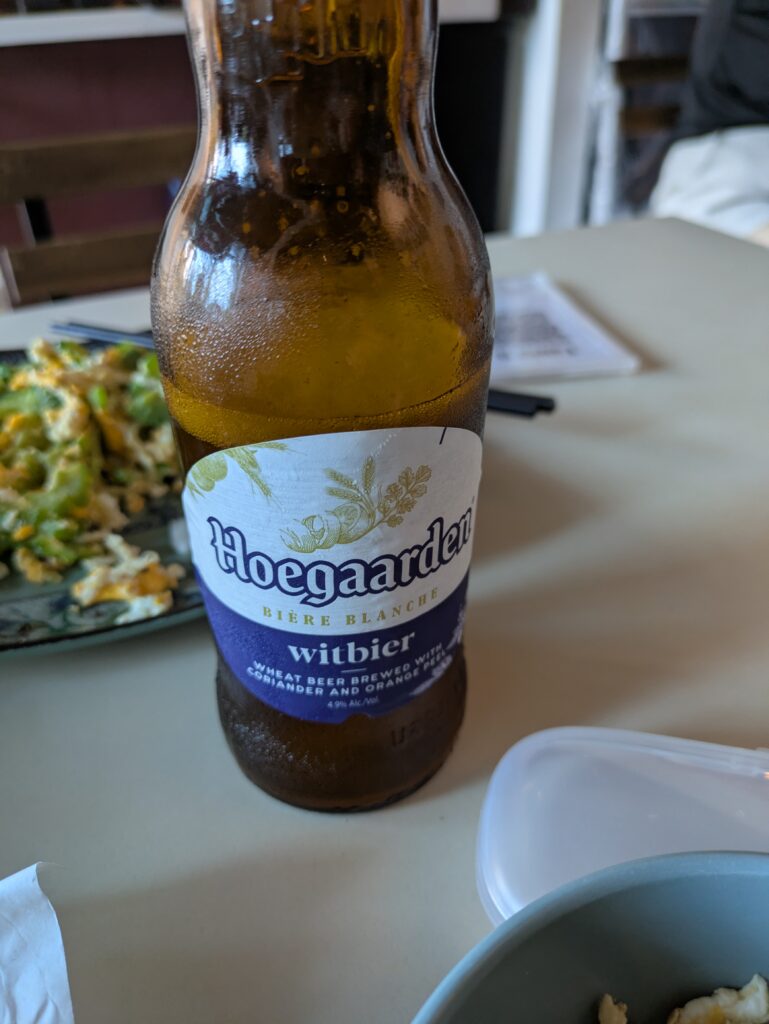 「Hoegaarden」というビールで、ホワイトエールのような味わい。日本で大好きだった「水曜日のネコ」にすごく似ていました!